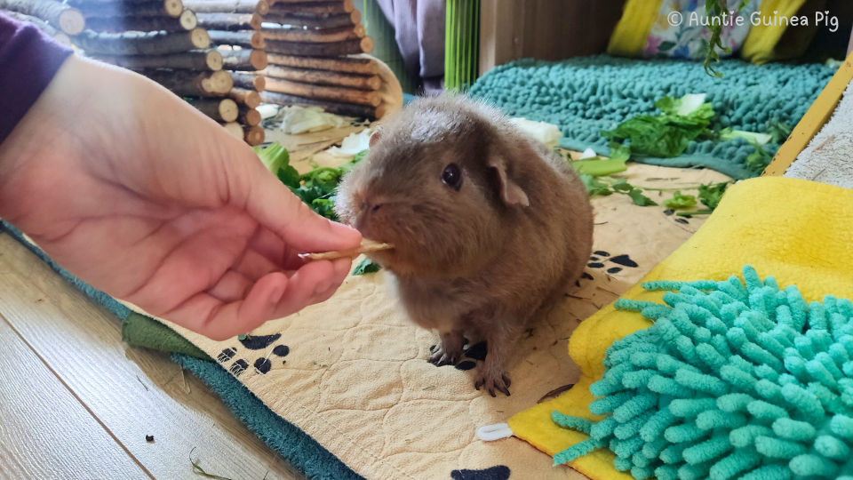 Guinea pigs have been domesticated for thousands of years. So it is not the same as keeping them “as they would live in the wild”. Rather, natural style for guinea pigs means considering their biological needs and instincts. Research has shown that their digestive system is geared towards an entirely plant-based diet. In addition, instincts left over from their wild counterparts makes them prey animals, who are not naturally “tame”. Natural style means building a relationship of mutual trust between guinea pig and caretaker, with curiosity rather than fear or resignation leading the way.